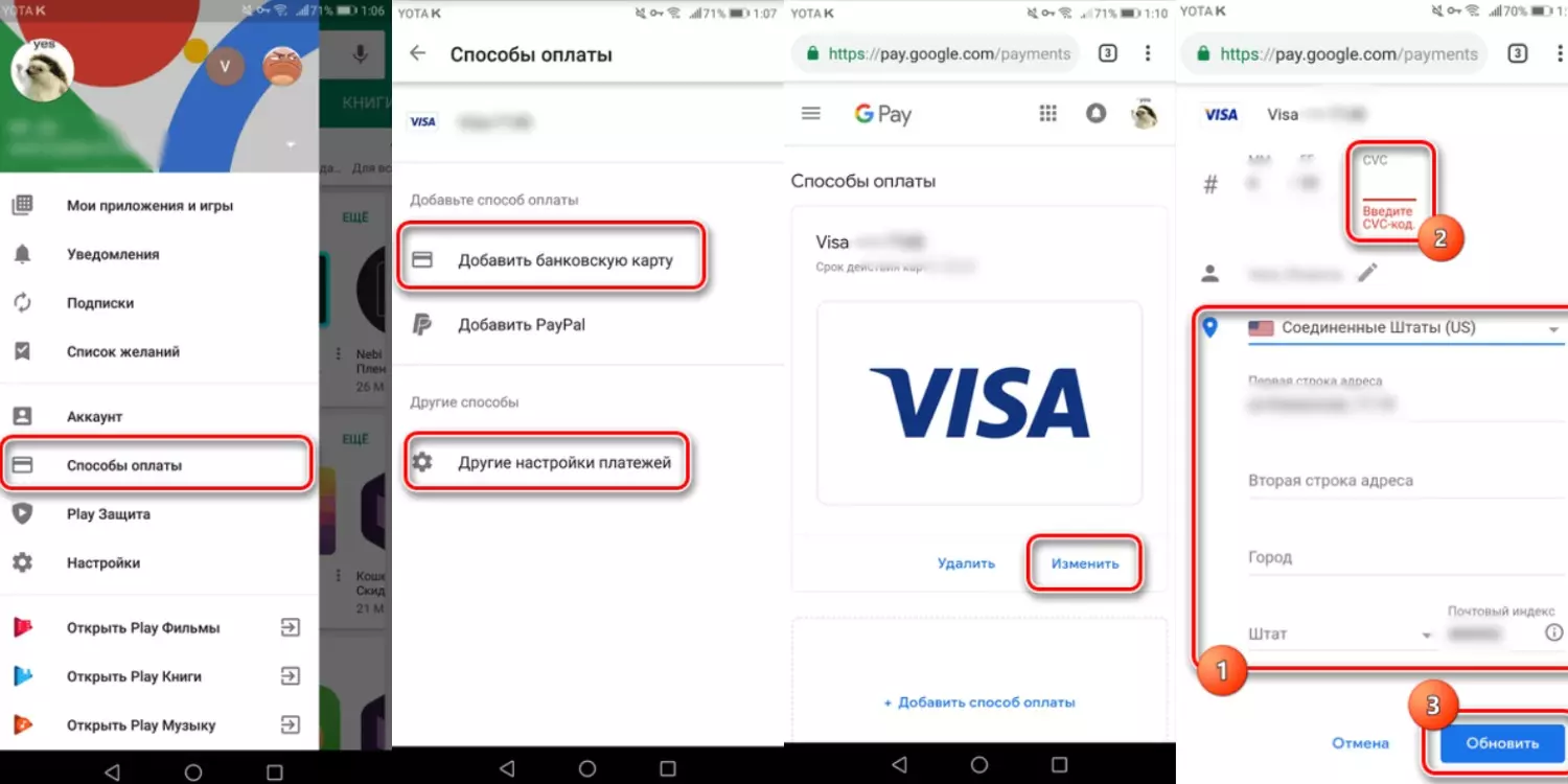 - зайти в аккаунт Google Play и перейти в раздел «Способы оплаты»;